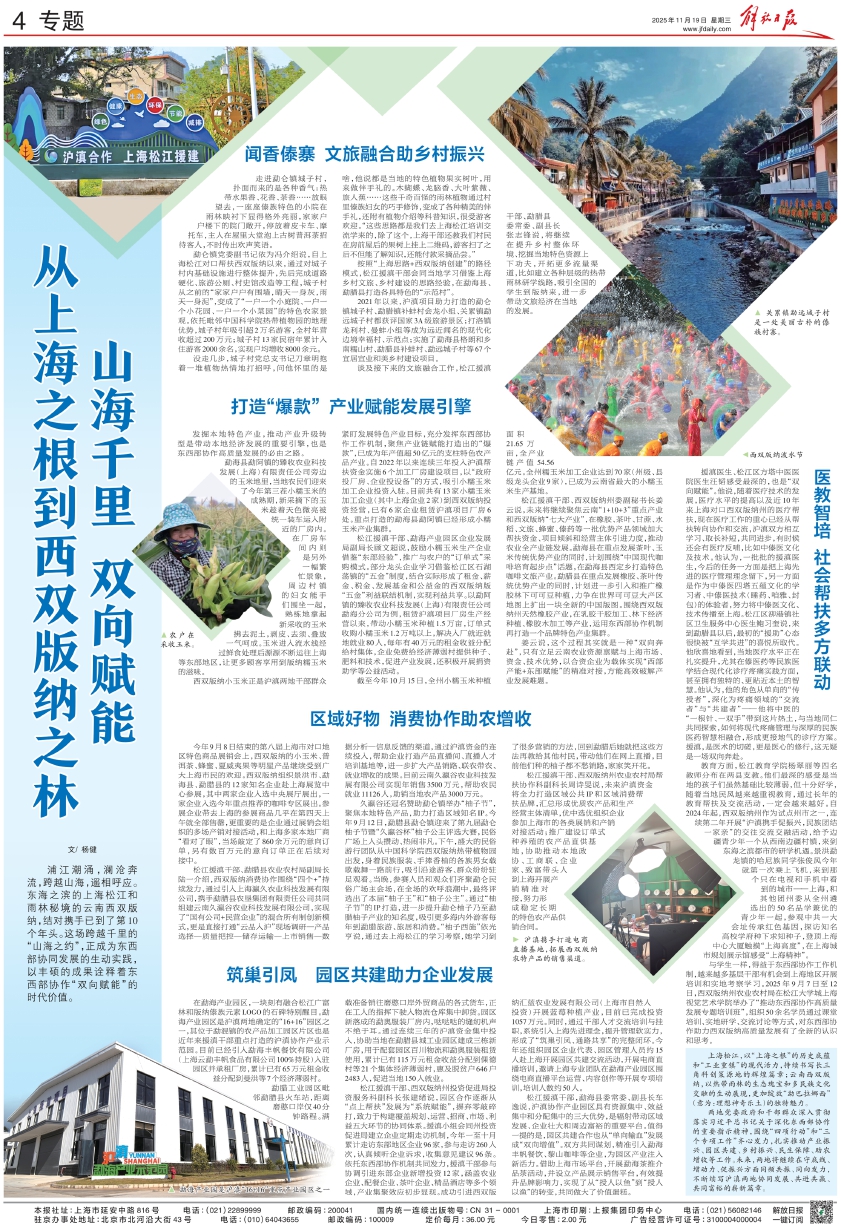 浦江潮涌,澜沧奔流,跨越山海,遥相呼应。东海之滨的上海松江和雨林秘境的云南西双版纳,结对携手已到了第10个年头。这场跨越千里的“山海之约”,正成为东西部协同发展的生动实践,以丰硕的成果诠释着东西部协作“双向赋能”的时代价值。