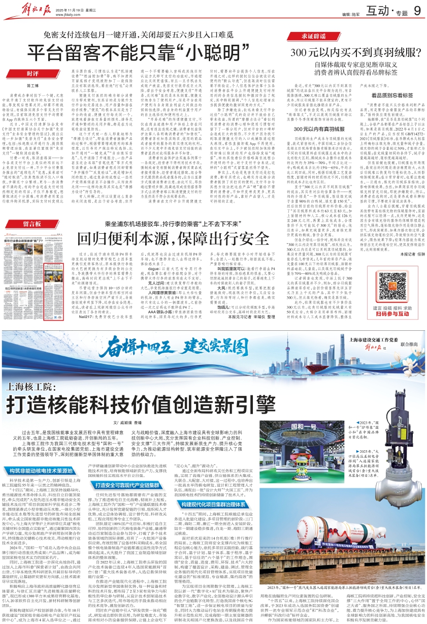 在推进产业链现代化进程中,上海核工院充分发挥新型举国体制优势,每一种设备和材料的技术开发,都布局了2至3家有竞争力与积极性的单位参与研制,从设计技术到制造技术与工艺多次迭代,用市场化的手段来推动相应的技术竞争,激发创新活力。
