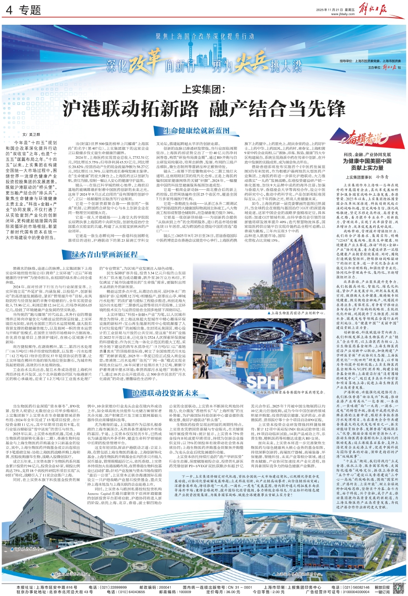 今年是“十四五”规划和国企改革深化提升行动的“双收官”之年,也是“十五五”谋篇布局之年。“十四五”以来,上实集团在构建全国统一大市场过程中,围绕世界一流绿色健康产业投资控股集团的发展愿景,既做沪港联动的“桥头堡”,更当融产结合的“排头兵”,聚焦生命健康与环境健康主责主业,“科技+金融+产业”协同发展,不仅打通了从实验室到产业化的创新闭环,更构建起链接国内国际双循环的市场枢纽,彰显了新时代国有资本在统一大市场建设中的使命担当。