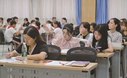 今年4月,来自安徽六安、安庆两地的50名希望小学骨干教师来到上海,开启为期6天的提升之旅。业务培训方面,不仅有业内专家带来前沿的教育理念和实用的教学方法,还有人工智能环境下“家校社”教育创新实践课程。上课之余,教师们还走进青少年职业教学指导及科创体验中心,参与中共一大纪念馆红色寻访活动。