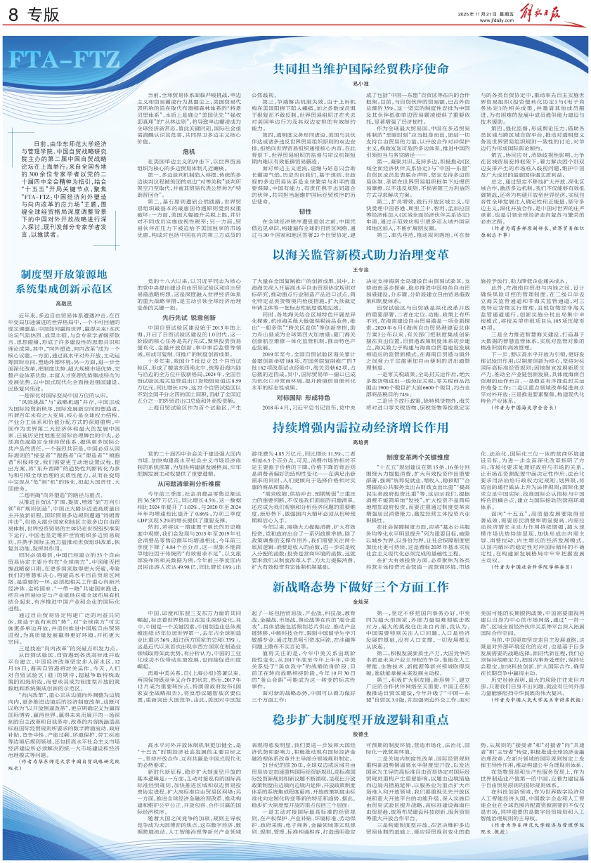 第三,积极扩大朋友圈。新形势下,建立广泛的合作伙伴网络至关重要。中国正在积极推进自贸区建设,今年升级了“中国—东盟”自贸区3.0版,并加强周边外交工作。面对美国可能的长期脱钩政策,中国需要重视构建以自身为中心的市场网络,通过“一带一路”、区域全面经济伙伴关系等平台深入拓展国际合作空间。