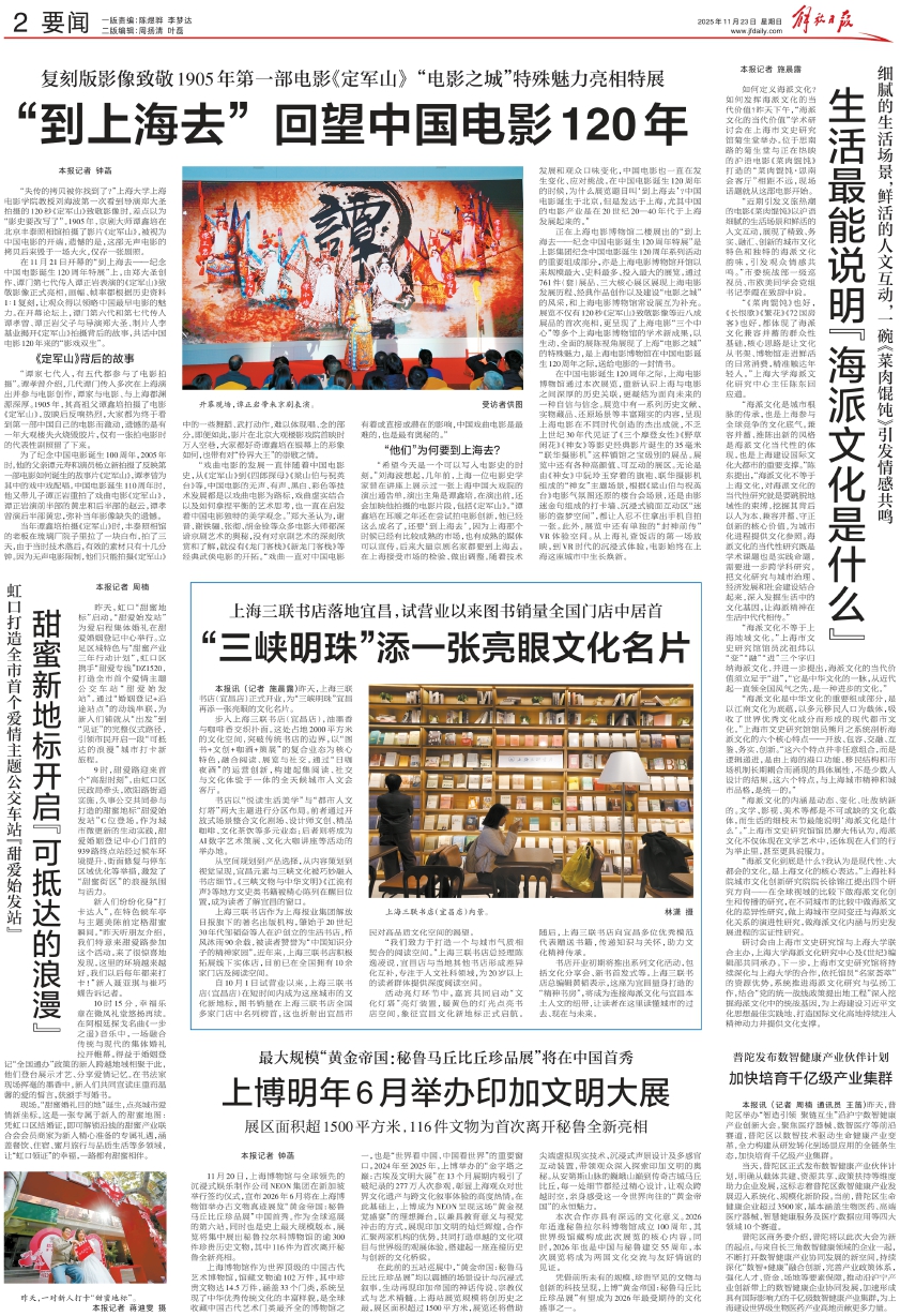 “希望今天是一个可以写入电影史的时刻。”刘海波想起,几年前,上海一位电影史学家曾在讲座上展示过一张上海中国大戏院的演出通告单,演出主角是谭鑫培,在演出前,还会加映他拍摄的电影片段,包括《定军山》。“谭鑫培在耳顺之年还在尝试拍电影创新,他已经这么成名了,还要‘到上海去’,因为上海那个时候已经有比较成熟的市场,也有成熟的媒体可以宣传,后来大量京剧名家都要到上海去,在上海接受市场的检验、做出调整。随着技术发展和观众口味变化,中国电影也一直在发生变化、应对挑战。在中国电影诞生120周年的时候,为什么展览题目叫‘到上海去’?中国电影诞生于北京,但是发达于上海,尤其中国的电影产业是在20世纪20—40年代于上海发展起来的。”