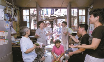 2015年7月24日,静安区72街坊地块盼动迁的居民们为拿到旧城区改建意愿征询意见书而激动不已。 -