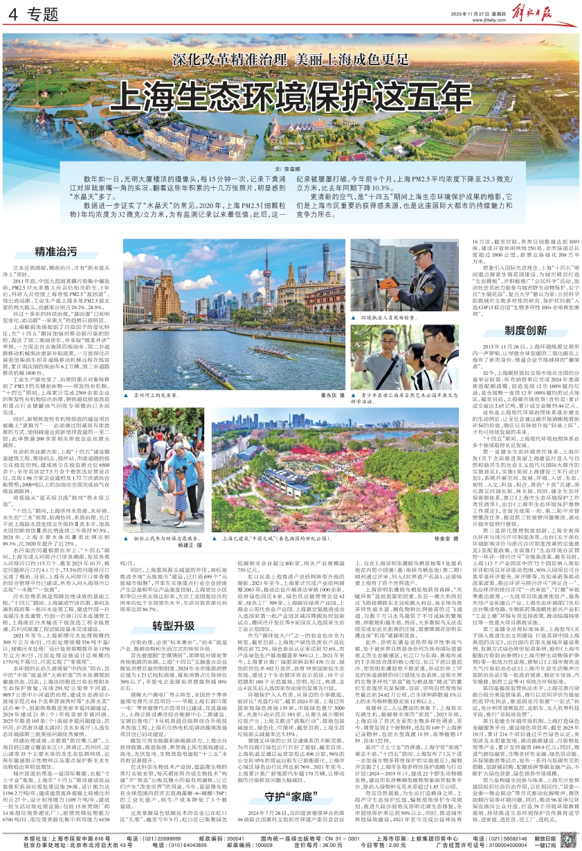 “十四五”期间,上海现代环境治理体系在多个领域取得长足发展。