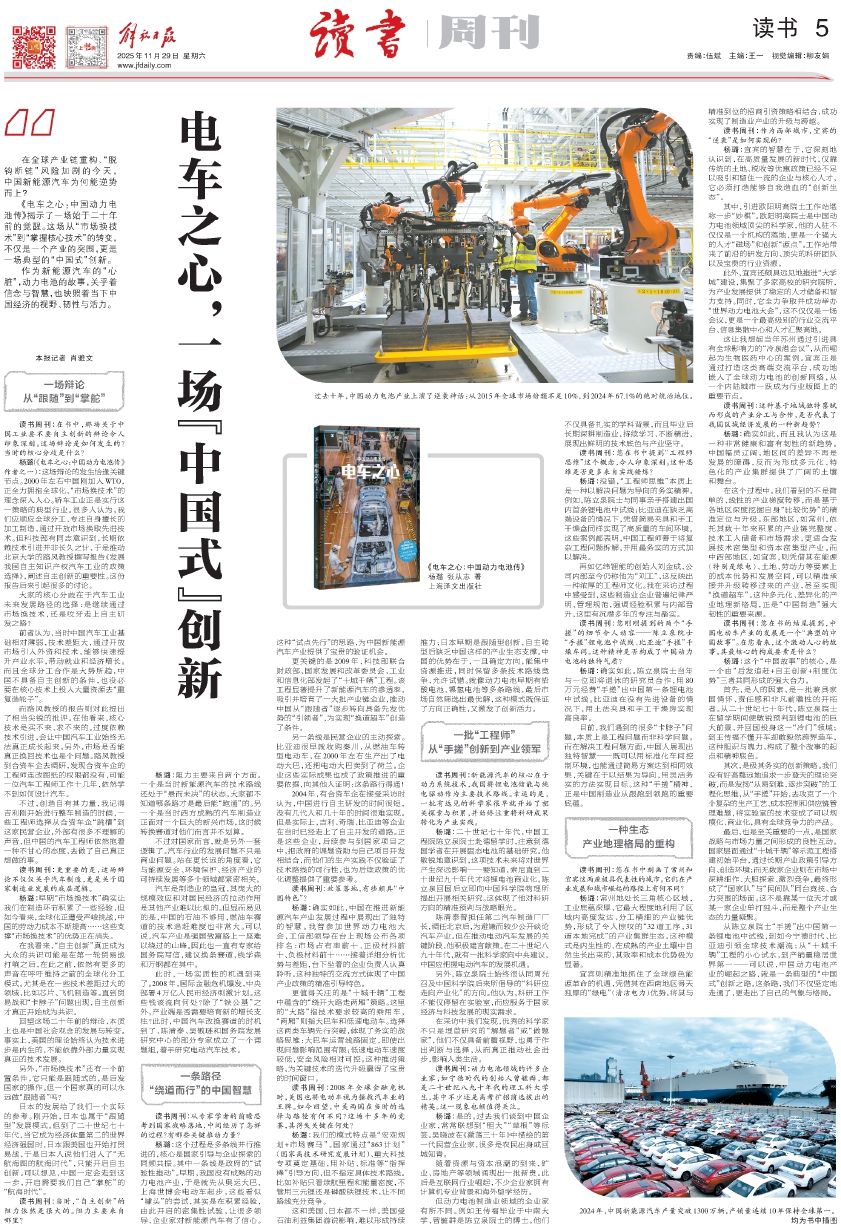 读书周刊:您刚刚提到的两个“手搓”的细节令人动容——陈立泉院士“手搓”锂电池中试线、比亚迪“手搓”干燥车间。这种精神是否构成了中国动力电池的独特气质?