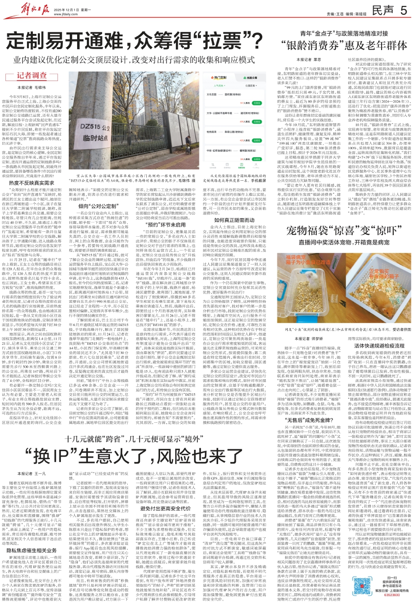 今年7月,闵行区居民葛中琤还通过人民建议征集渠道提交了一则人民建议,从运营的各个方面呼吁改进定制公交服务。这则人民建议得到市委市政府的采纳和重视。