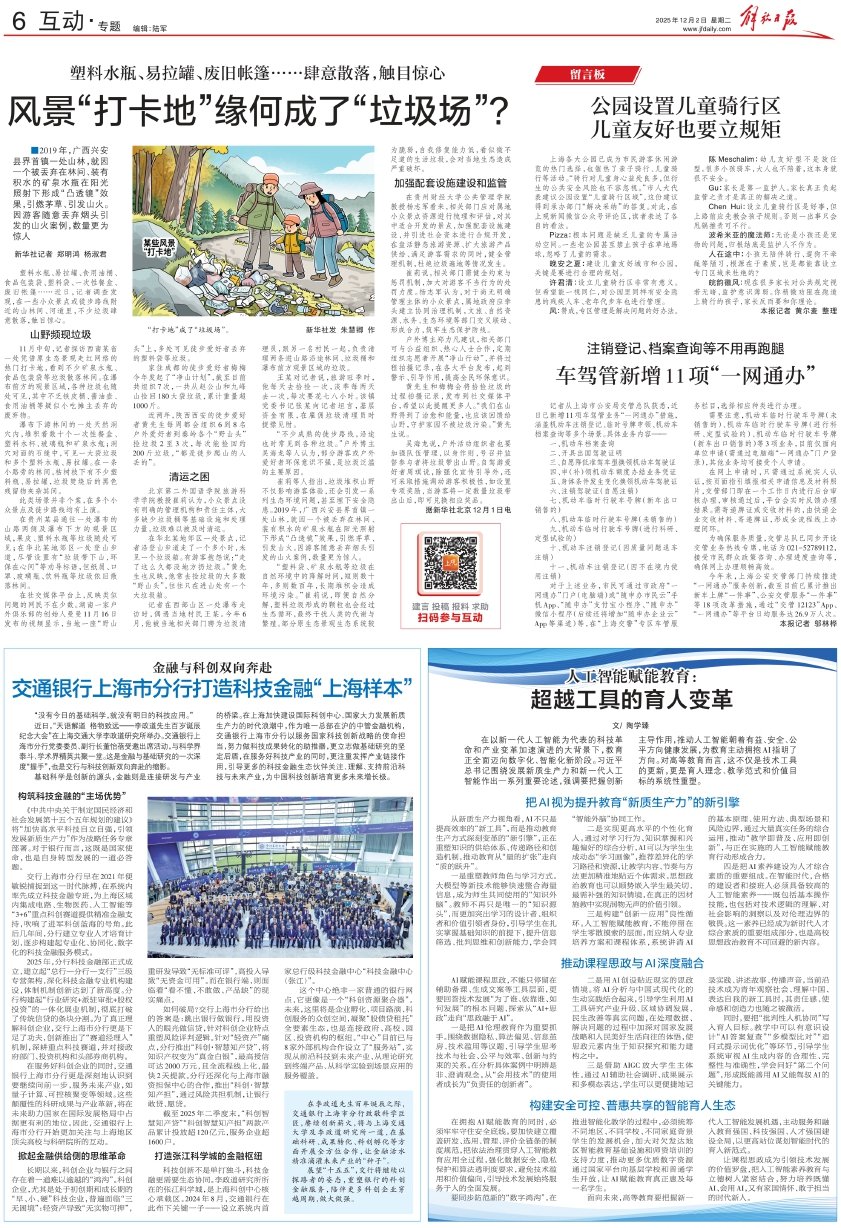 三是构建“创新—应用”良性循环。人工智能赋能教育,不能停留在学生零散摸索的层面,而应纳入专业培养方案和课程体系,系统讲清AI的基本原理、使用方法、典型场景和风险边界,通过大量真实任务的综合运用,推动“教学即普及、应用即创新”,与正在实施的人工智能赋能教育行动形成合力。