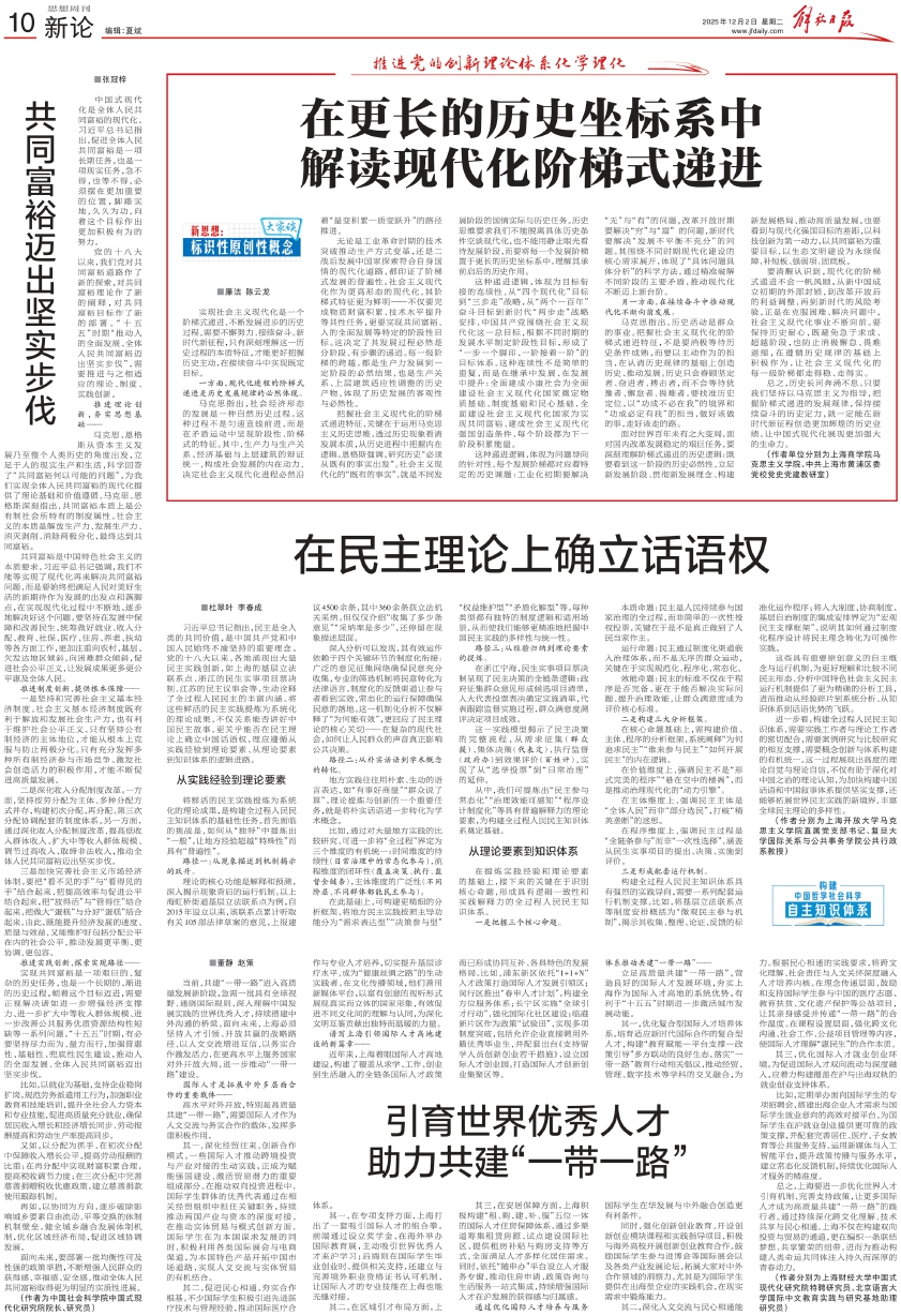 在价值维度上,强调民主不是“形式完美的程序”“悬在空中的楼阁”,而是推动治理现代化的“动力引擎”。