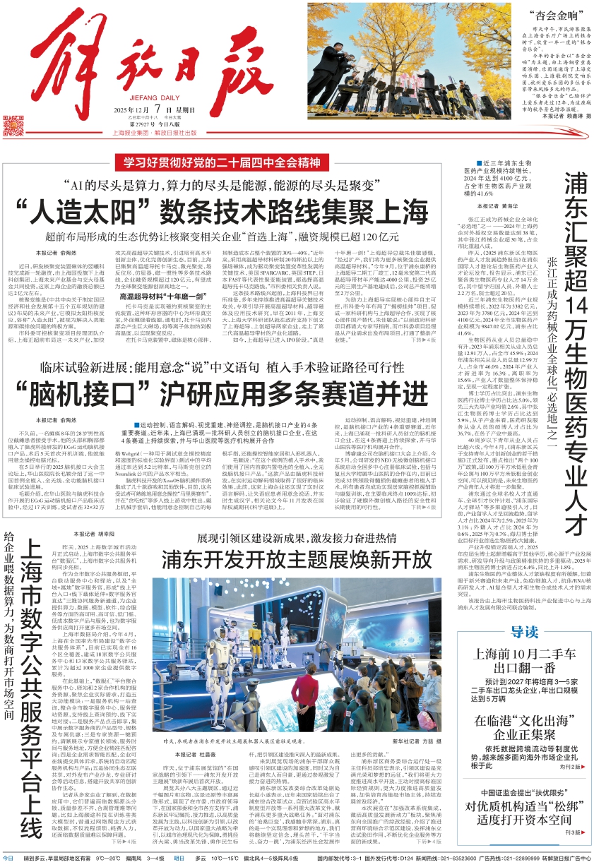 本次展览在“加强改革系统集成,激活高质量发展新动力”板块,聚焦浦东向全国推广的综改经验,介绍了推进营商环境综合示范区建设、发挥浦东立法试验田作用、不断优化企业服务等方面的新成果。 下转 4版(上接第1版)“深入推进高水平制度型开放,增创国际竞争合作新优势”板块介绍了上海自贸试验区高水平制度型开放80条举措完成情况。“全力做强创新引擎,打造自主创新新高地”板块介绍了打造集成电路、生物医药、人工智能三大世界级产业集群,培育热带雨林式科创生态,“青创15条”“两个100万”支持政策助力“青创第一城”等新实践。