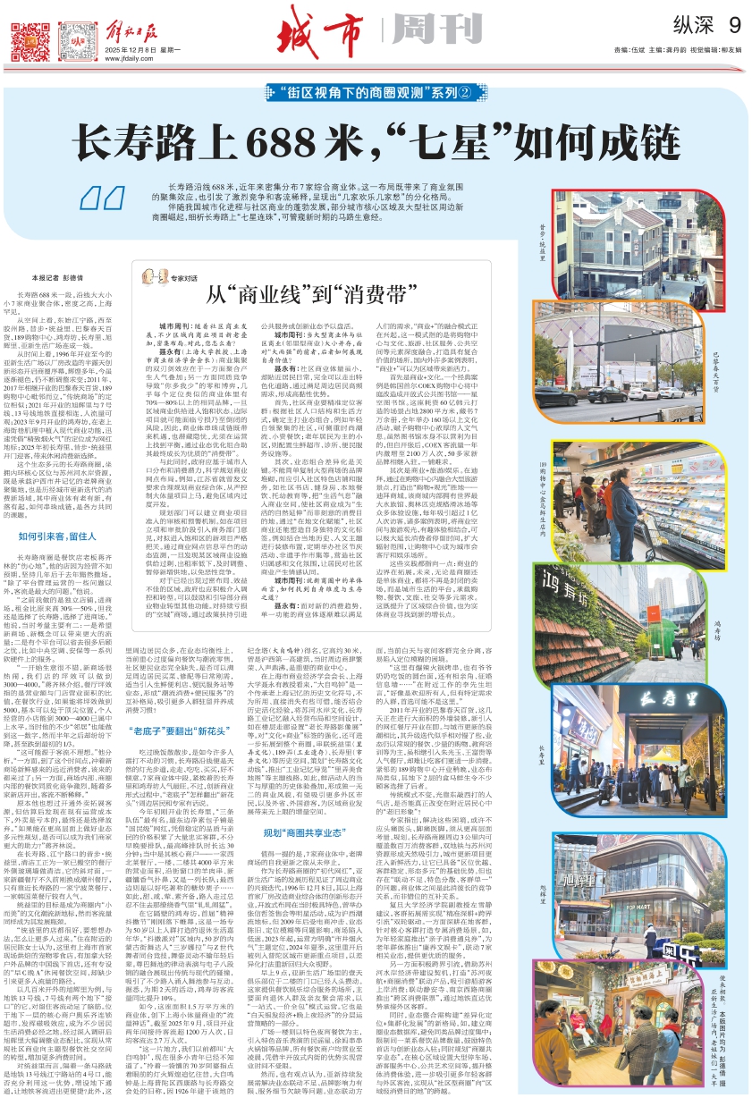 这个生态多元的长寿路商圈,坐拥内环核心区位与苏州河水岸资源,既是承载沪西市井记忆的老牌商业聚集地,也是历经城市更新迭代的消费新场域,其中商业体有老有新,有落有起,如何串珠成链,是各方共同的课题。