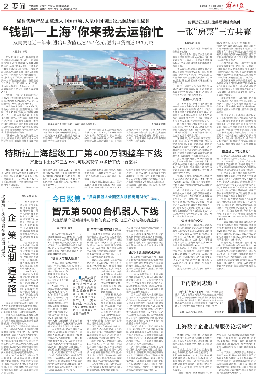 2024年11月14日,秘鲁钱凯港正式开港。当年12月18日,中远海运旗下“新上海”轮装载着2.4万吨秘鲁特色产品,经过23天航行,正式抵达上海洋山港,标志着“钱凯—上海”两港正式实现双向贯通。目前,这条跨越太平洋的新航路双向贯通将满一年。据上海海关统计,近一年来,“钱凯—上海”海运航线进出口货值已达53.5亿元,进出口货物达19.7万吨。受这条航线带动,今年前10个月,上海对秘鲁的外贸进出口值大幅增长47.1%。