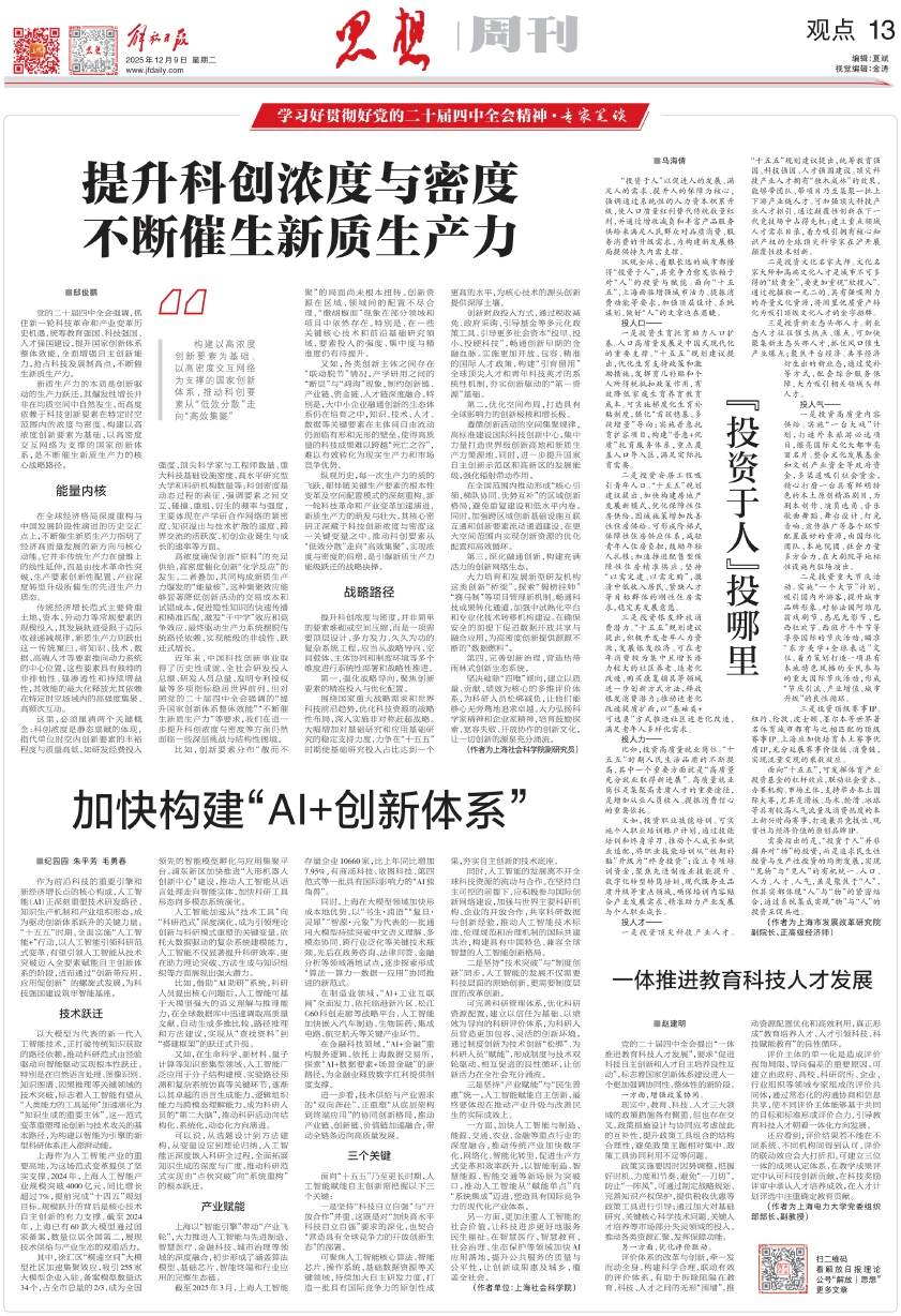 党的二十届四中全会提出“一体推进教育科技人才发展”,要求“促进科技自主创新和人才自主培养良性互动”,标志着国家创新体系建设进入一个更加强调协同性、整体性的新阶段。