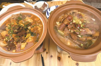 我们去迎春街吃了“三件套”之一的炖锅。“花园排档”的老板娘朱婷婷和丈夫做了近20年炖锅,生意一直还算不错。她不明白,自己和同行们做了几十年的炖锅,怎么就突然和去年才开张的连锁奶茶店和糕饼店联系在一起,凑出了个“三件套”。