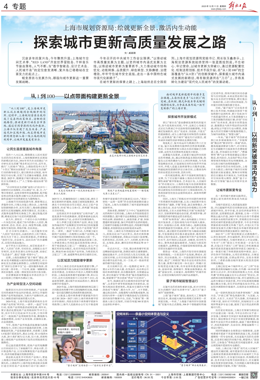 当城市更新迈入高质量发展阶段,早已超越单纯的空间焕新层面,要综合考虑城市特色,美学价值,社会经济效益等各方面因素。这需要控品质、提效能,让每一寸空间释放出最大价值。2023年我市出台首个贯通城市更新全流程的政策文件,贯彻落实党中央国务院对城市更新提出的新要求,今年全市规划资源系统对政策文件做了迭代,印发《关于加快转变发展方式集中推进本市城市更新高质量发展的规划资源实施意见(2025版)》。