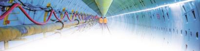 上海市天然气主干管网崇明岛—长兴岛—浦东新区五号沟LNG站天然气管道工程隧道内部。 -