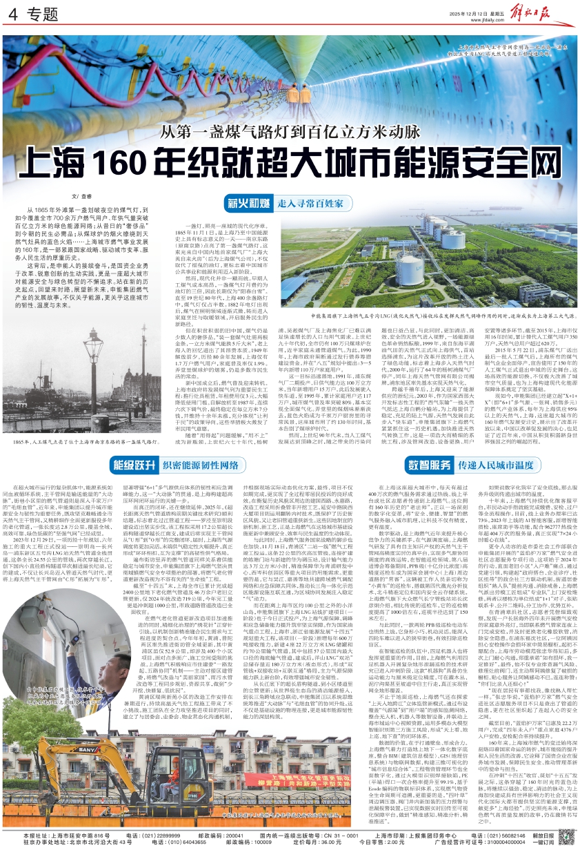 现如今,申能集团已经建立起“X+1+X”(即“6+1”多气源、一张网、销售多元)的燃气产业体系,每年为上海供应95%以上的天然气。上海,这座超大城市的160年燃气发展变迁史,展示出了改革开放以来,中国以改革促发展的决心,也见证了近百年来,中国从积贫积弱跻身世界强国之列的崛起历程。
