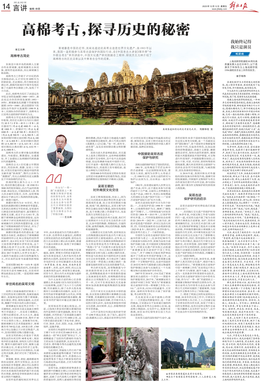 持续600余年的吴哥文明在东南亚文明史中扮演着举足轻重的角色,其创造的辉煌历史值得我们不断深入发掘。