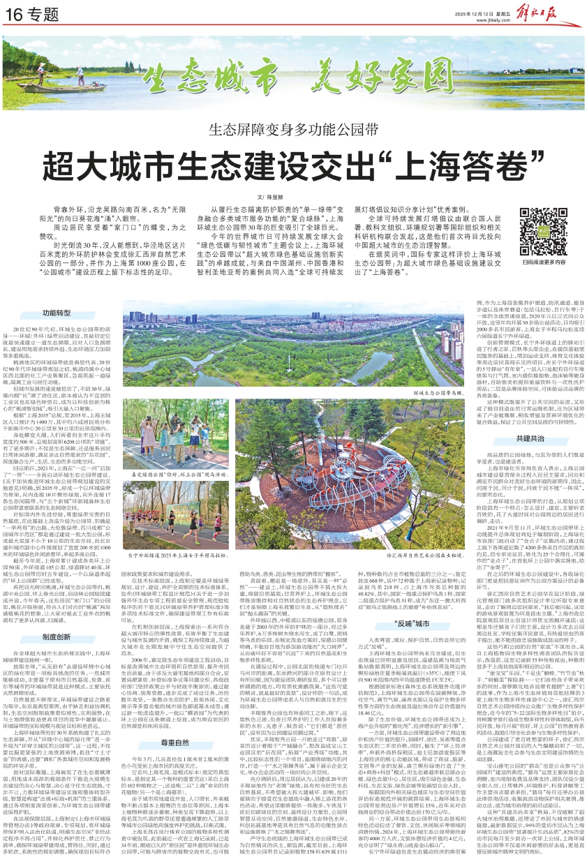 在全球超大城市生态治理实践中,上海环城绿带建设独树一帜。