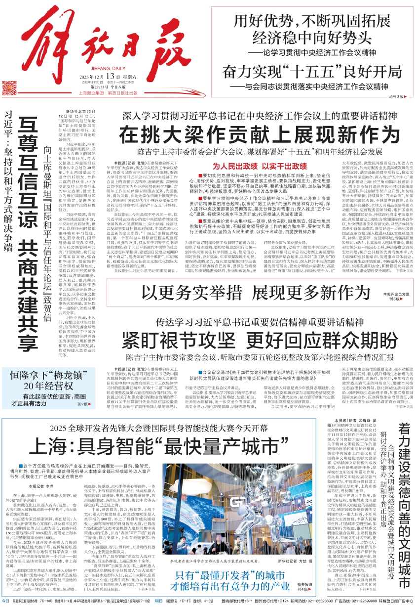 “资深前辈”当属宝山区,其上海机器人产业园从早期吸引全球机器人“四大家族”之一的日本发那科入驻,到近年来孵化出百余家本土企业,还吸引高校、地方与宇树科技共建通用智能机器人研究院,宇树科技掌门人王兴兴亲任院长。 下转 8版