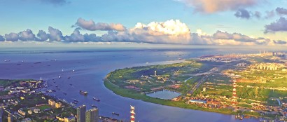 黄浦江的东北角,一座由泥沙“吹”出来的月牙儿形岛屿正在讲述着城市与自然和谐共生的现代篇章。