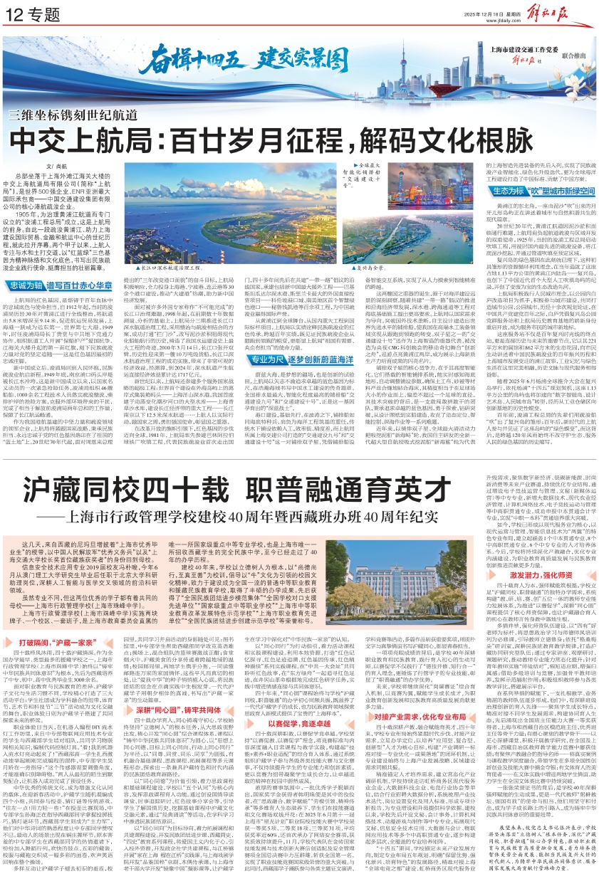 上航局的红色基因,是熔铸于百年血脉中的忠诚底色与使命担当。自1912年起,当时的浚浦局历经30年对黄浦江进行全线整治,将航道由5.8米增深至9.14米,促进航运贸易发展,上海港一跃成为远东第一、世界第七大港。1949年,时任浚浦局局长丁贵堂与中共地下党通力协作,组织航道工人开展“保船护产”爱国抗争。江海关大楼升起的第一面红旗,刻下民族疏浚力量对党的坚定追随——这是红色基因最初的忠诚注脚。