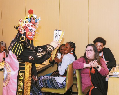 外国作家观看变脸表演。 均 资料图片 -
