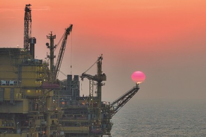这是12月20日傍晚拍摄的渤海油田海上油气平台作业现场。新华社发