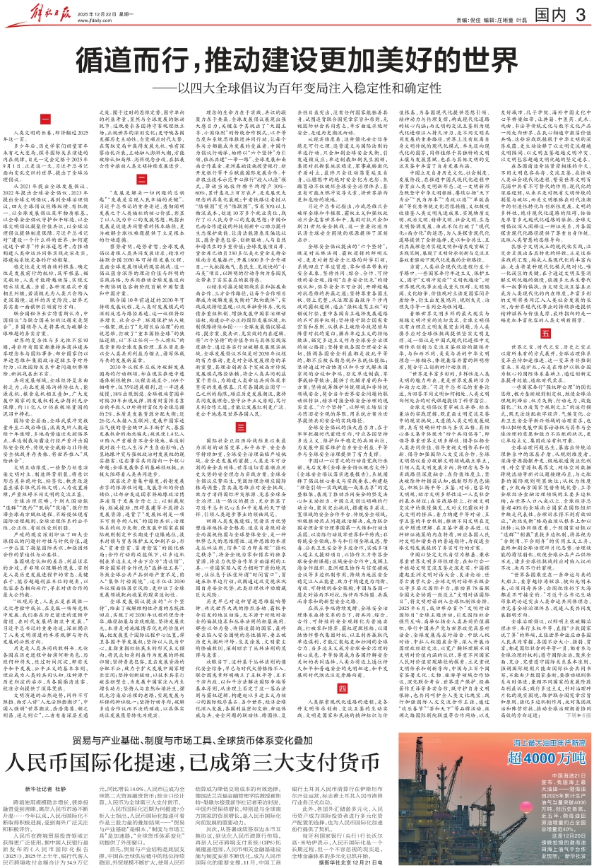 中国海油21日宣布,我国海上最大油田——渤海油田2025年累计生产油气当量突破4000万吨,创历史新高。近五年,渤海油田原油增量约占全国总增量近40%。