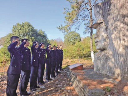 军天湖监狱的民警在红烛精神雕塑前宣誓。 -