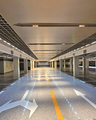 传统地下车库的陈旧与乏味,在安高申宸院的车库空间里得到了改善。项目地库以酒店式标准精心雕琢,每一处细节都彰显不凡气度:柔和的灯光照亮归家之路,考究的墙面守护居者的舒适与雅致,清晰的动线让归家步伐更加从容自信。从踏入这里的那一刻起,品质体验便如影随形,生活的仪式感在地下空间尽情铺排。地下车库被赋予了高品质的质感,将彩石美学与高强度金刚砂工艺精妙融合,打造出一种视觉震撼,具备超强耐用性能,地面光泽璀璨如镜,耐磨防滑性能卓越。