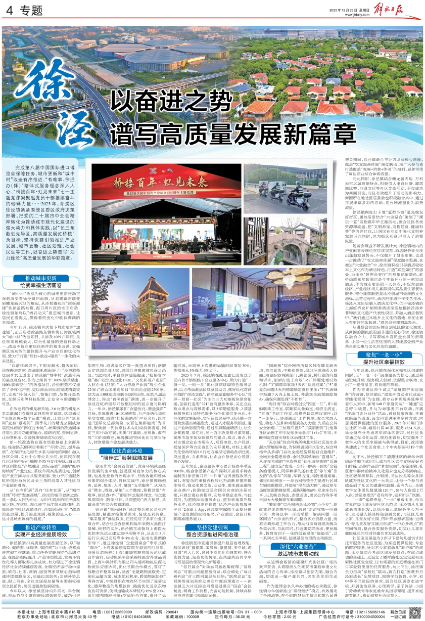 从进博会的国际舞台到社区的文化课堂,从商圈的潮流前沿到非遗的匠心传承,徐泾镇以融合之力,书写着城乡高质量发展的新篇章,让每一位生活在这里的人都能感受到产业共兴的实惠与文化共荣的温暖。