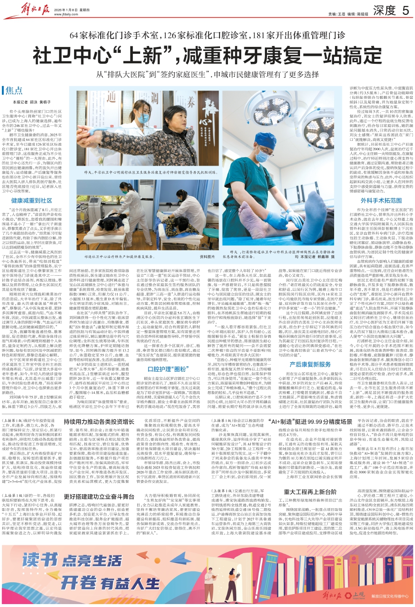 据市卫生健康委的消息,2025年全市首批建成64家社区标准化门诊手术室,至今已建成126家社区标准化口腔诊室,181家社卫中心开出体重管理门诊,这些服务正成为不少社卫中心“圈粉”的一大理由。此外,有的社卫中心还先行一步,为辖区内的居民画出健康画像,有的放矢开出健康处方;运动健康、产后康复等服务也在部分社卫中心新开设出来。曾经去大医院人挤人排队的医疗服务,社区能否兜底接住?近日,记者深入社卫中心寻找答案。