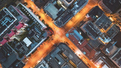 上海市中心道路交叉口的黄昏景色 视觉中国 供图 -