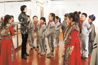 1月8日,淮海中路社区文化活动中心六楼热闹非凡,越剧范派名家韩婷婷手把手指导小朋友戏曲身段,观众喜爱的演员毛猛达、茅善玉、李传缨排练新戏《圆明园马首谜案》,评弹名家秦建国与爱好者同台表演,开启首届淮海戏剧日。