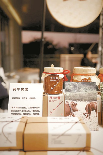俱乐部转型后,成员们计划推出有关碧山村的风物展,让藏在深山里的乡野好货被更多人知晓。他们分头忙活:上山走访调研,寻找合适的产品,为其设计有辨识度的包装,联系展览场地……最终,野蜂蜜、土椒酱、桂花酒酿、萝卜干、月饼等被挑选出来。去年10月1日,“言碧有物”展览亮相。