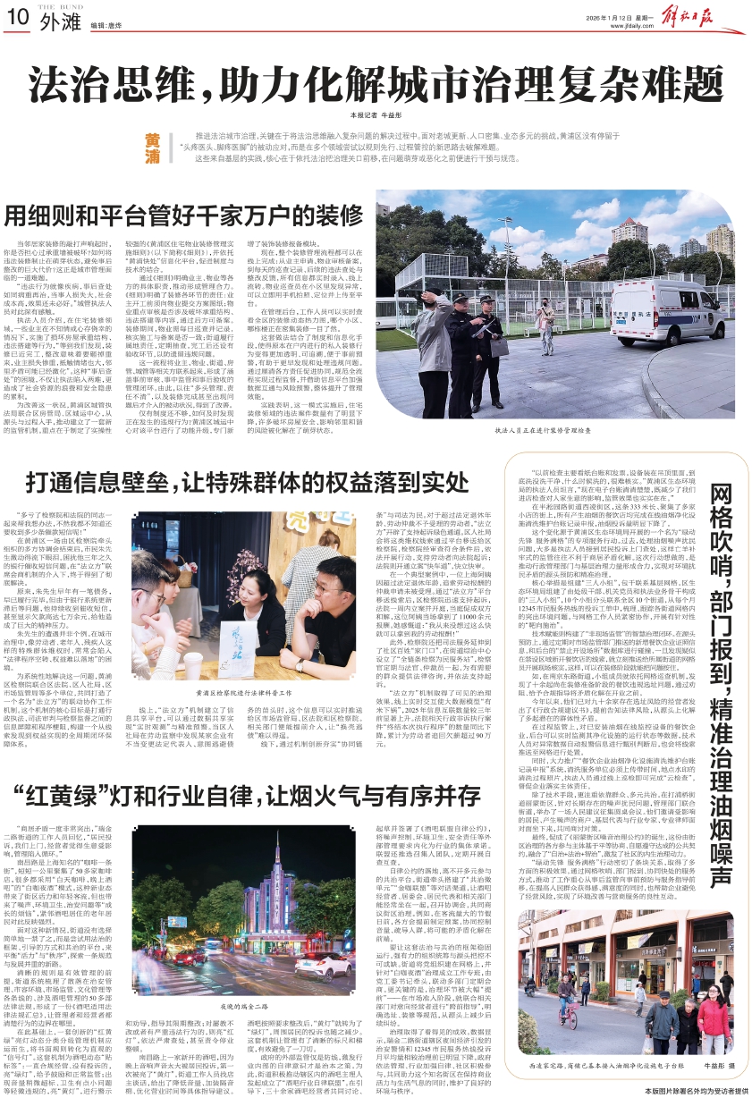 推进法治城市治理,关键在于将法治思维融入复杂问题的解决过程中。面对老城更新、人口密集、业态多元的挑战,黄浦区没有停留于“头疼医头、脚疼医脚”的被动应对,而是在多个领域尝试以规则先行、过程管控的新思路去破解难题。