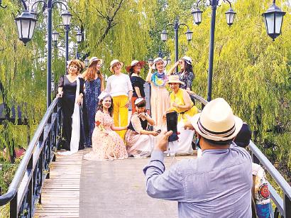 打扮时尚的阿姨们在庄园内尽情拍摄。 均 资料图片 -