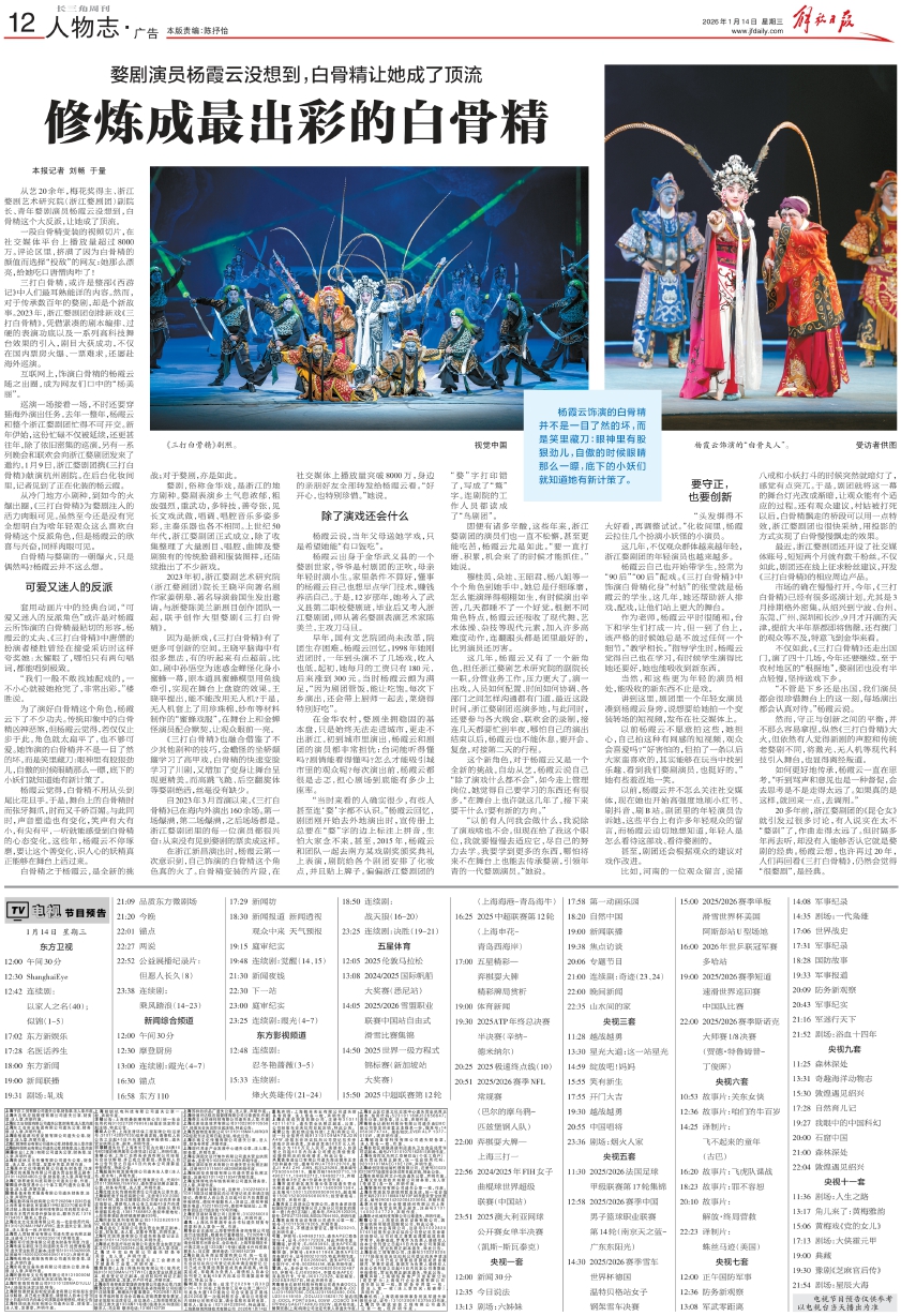 在浙江新昌演出时,杨霞云第一次意识到,自己饰演的白骨精这个角色真的火了。白骨精变装的片段,在社交媒体上播放量突破8000万,身边的亲朋好友全部转发给杨霞云看。“好开心,也特别珍惜。”她说。