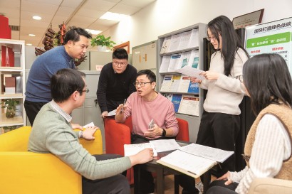 虹口区绿色低碳服务工作专班人员在研究工作。 杨伯荣 摄