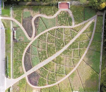 从高空俯瞰,位于竖新镇惠民村的“一垄地”呈现叶子的造型。 资料图片