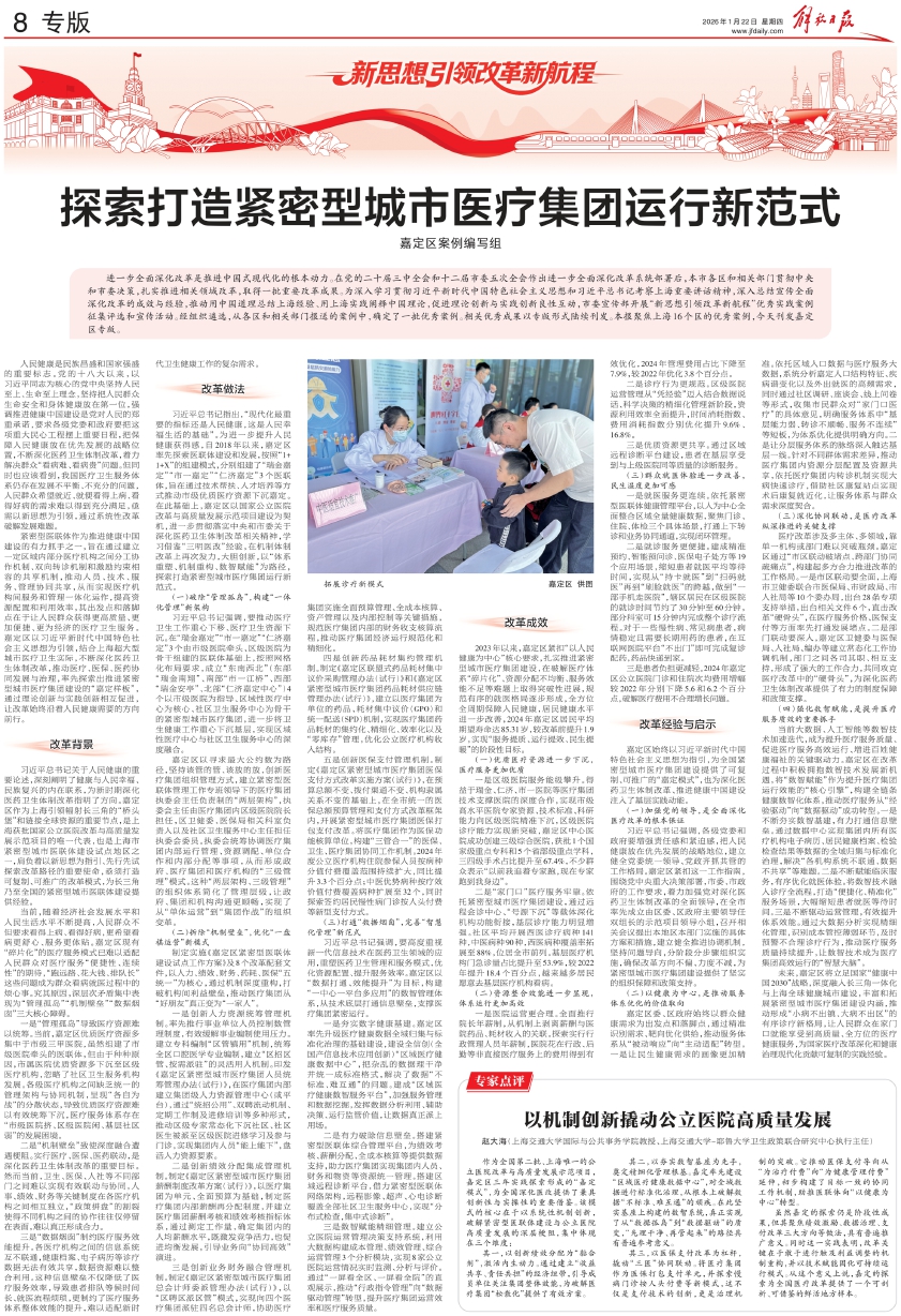 虽然嘉定的探索仍是阶段性成果,但其聚焦绩效激励、数据治理、支付改革三大方向等做法,具有普遍推广意义。同时这一实践表明,改革关键在于敢于进行触及利益调整的机制重构,并以技术赋能固化可持续运行模式。从这个意义上说,嘉定的探索为全国医疗改革提供了一个可剖析、可借鉴的鲜活地方样本。