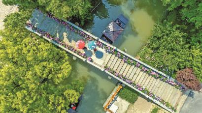 二是让“生态颜值”催生“经济价值”。东厍村将生态修复与文旅IP打造深度绑定,创新走出了“以花为媒·生态赋能”的发展路径。在以绣球花为生态媒介打造的绣球花节上,闲置林地变成了“万株绣球花海”,古桥、流水、白墙黛瓦与缤纷花境构成了“可观赏、可体验、可消费”的江南画卷。游客们在此既能打卡“大地艺术花径”,也能参与“花镜DIY”亲子活动,还能品尝绣球花特饮等创意美食。这种“用生态的方式美化生态,用自然的手法修复自然”的做法,不仅降低了建设成本,更保留了乡村的原始风貌和野趣,实现了生态效益与景观效果的统一。