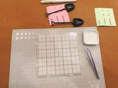 听闻记者是第一次体验“拼豆”,店员小杨拿来拼豆用的工具——用于铲豆的豆铲,可以将豆子立起来的“立豆盘”,用于夹豆子的镊子以及拼豆用的豆板。“拼豆上手很简单的,首先要找到你想拼的图案及标有色号的图纸,根据颜色摆放就行。”小杨说完,还放了一张便利贴到桌上,用于记录拼豆所用的时长。记者还想追问,他已经走开去招呼别的客人,显然,在他眼里这些东西“一看就会”。