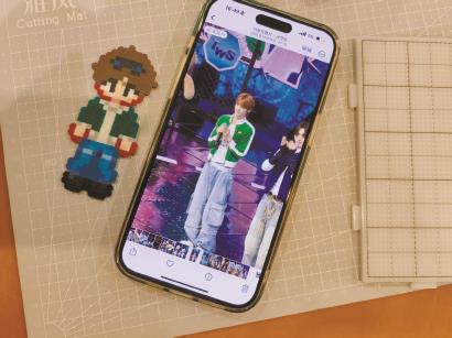 “我平时主要在家拼豆,去年发现多了很多线下店,身边玩的朋友也确实多了起来。”“80后”张小姐从2023年开始拼豆,当时只有96色,现在已经进化出了226色。为了拼出更加生动的图案,她不断扩充自己的材料包,最复杂的一件作品花了四个多小时才拼好。在她看来,拼豆可以让自己专注于这一件事,不去看手机,享受静下心来的时光,看到每件完成的作品都很有成就感。“我喜欢看演唱会,会把自己喜欢的爱豆(偶像)当天的妆造用拼豆展示出来,也会做一些物料送给同担(喜欢同一偶像的粉丝群体)。”她发现,周围拼拼豆的人的确不少都在追星,不过,拼豆的内容不限于追星,平时她也会拼一些可爱风的卡通图案和节俗题材,“快过年了,我给自己拼了财神,希望新年能有好的财运。”