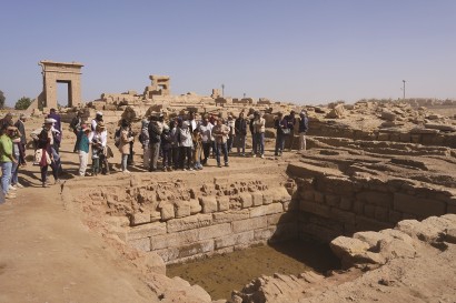 1月24日,受邀嘉宾在埃及卡尔纳克孟图神庙遗址区观看圣湖建筑遗址。新华社发
