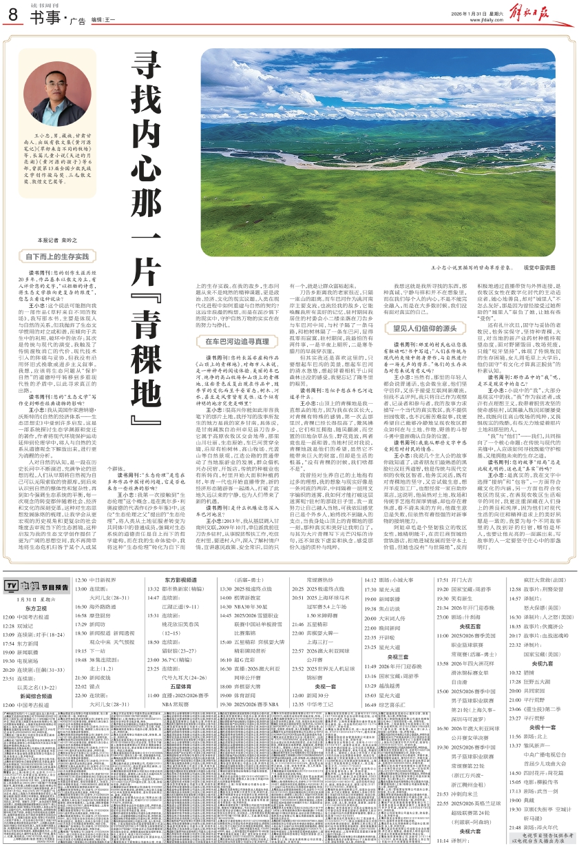 王小忠:这个说法可能指向我的一部作品《草籽来自不同的牧场》。我写那本书,主要是体现人与自然的关系,但我抛弃了生态文学惯用的对立或和谐,而倾向于共生中的利用、破坏中的依存;其次是传统与现代的演变,我触及了传统混牧消亡的代价、现代技术引入的阵痛与妥协,但我没有沿用怀旧式挽歌或进步主义叙事。我想,应该将生态问题从“保护自然”的道德呼吁转移到多重现代性的矛盾中,以此寻求真正的出路。