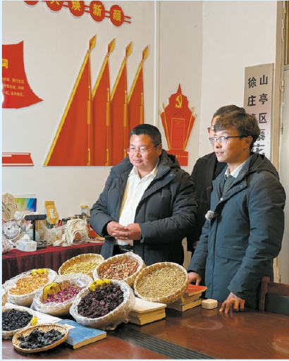有经验打底,几人认定直播是条路。最初他们只知道在直播间卖地瓜、小米、花椒,话术也生硬,面对镜头,只会说“下一单吧”。两个月后,观众慢慢多起来,一天能卖五六百元。他们摸熟节奏,编出了一些口诀、加入俗语,让介绍更接地气:酸枣叶茶,有粉丝喝了反馈可以缓解失眠;紫藤花苞不仅可以观赏,还能用来炒鸡蛋。