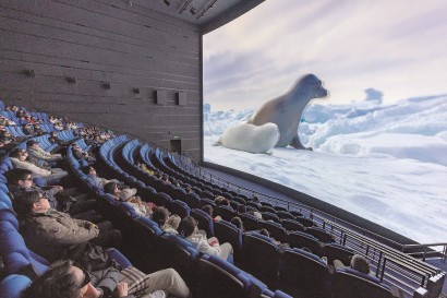 巨幕影院播放科普影片,实现声画精准同步的沉浸式观影体验。 -