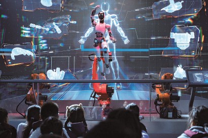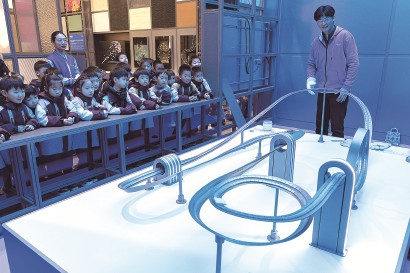 焕新后的场馆汇聚926件展品,其中80%具备互动体验功能,87%为原创研发成果,230余件来自信息、能源、航空、材料等领域的珍贵科技藏品首次集中亮相。沉浸式互动成为核心亮点,多项前沿技术与展项深度融合,让抽象科学原理变得可触可感。“明日行者”展区内,人形机器人“玄俑”可实现多轮智能对话与指令响应;“飞行探秘”展区的1:1高仿真福特三发飞机,搭载VR技术打造“空中之旅”,带领观众穿梭于航空发展史中;“材料魔方”的超导赛车展项,通过分布式电磁控制实现异形轨道悬浮运行,单次连续演示超10圈,直观展现材料性能极限。突破创新的同时,上海科技馆保留并优化了部分经典展项。“智慧之光”作为唯一整体保留的展区,60余件经典互动展品经过技术升级,持续传递物理、数学等基础科学的魅力。