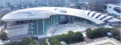 俯瞰焕新升级后的上海科技馆,巨形翼状屋顶科技感十足。 -